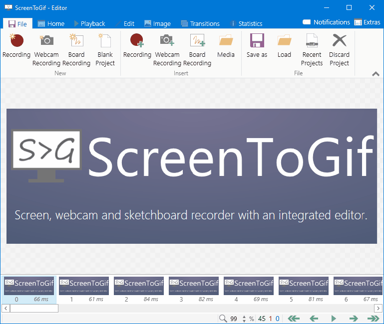 ScreenToGif 是一款非常轻便的、完全免费的屏幕动态图捕获软件,它可以用来快速录制屏幕上的指定区域,并将其直接保存为GIF动画文件。录制后还可以对gif进行编辑,例如删除不合适的某一帧、添加滤镜效果等。软件大小只有几M,免安装直接运行,界面也非常简洁,启动速度快,操作简单易上手。